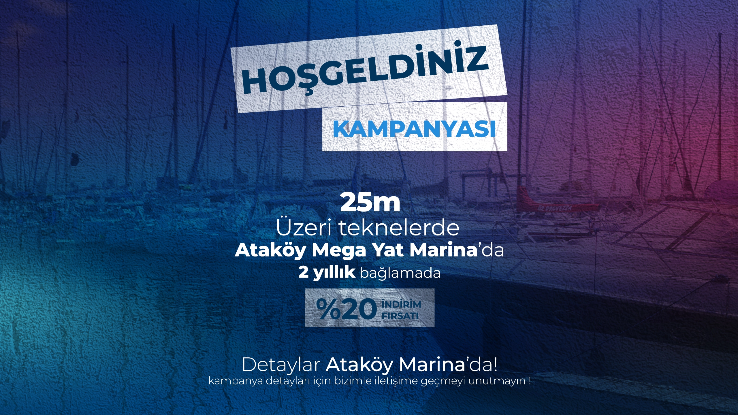 Marinamıza günlük, aylık veya yıllık bağlama için gelmeden iki gün önce Ön Büro’muza müracaat ederek, rezervasyon yaptırmanızı önemle rica ederiz. Rezervasyonsuz gelen misafirlerimizi maalesef ki yoğunluktan dolayı marinamızda ağırlayamayacağımızı üzülerek bildiririz.