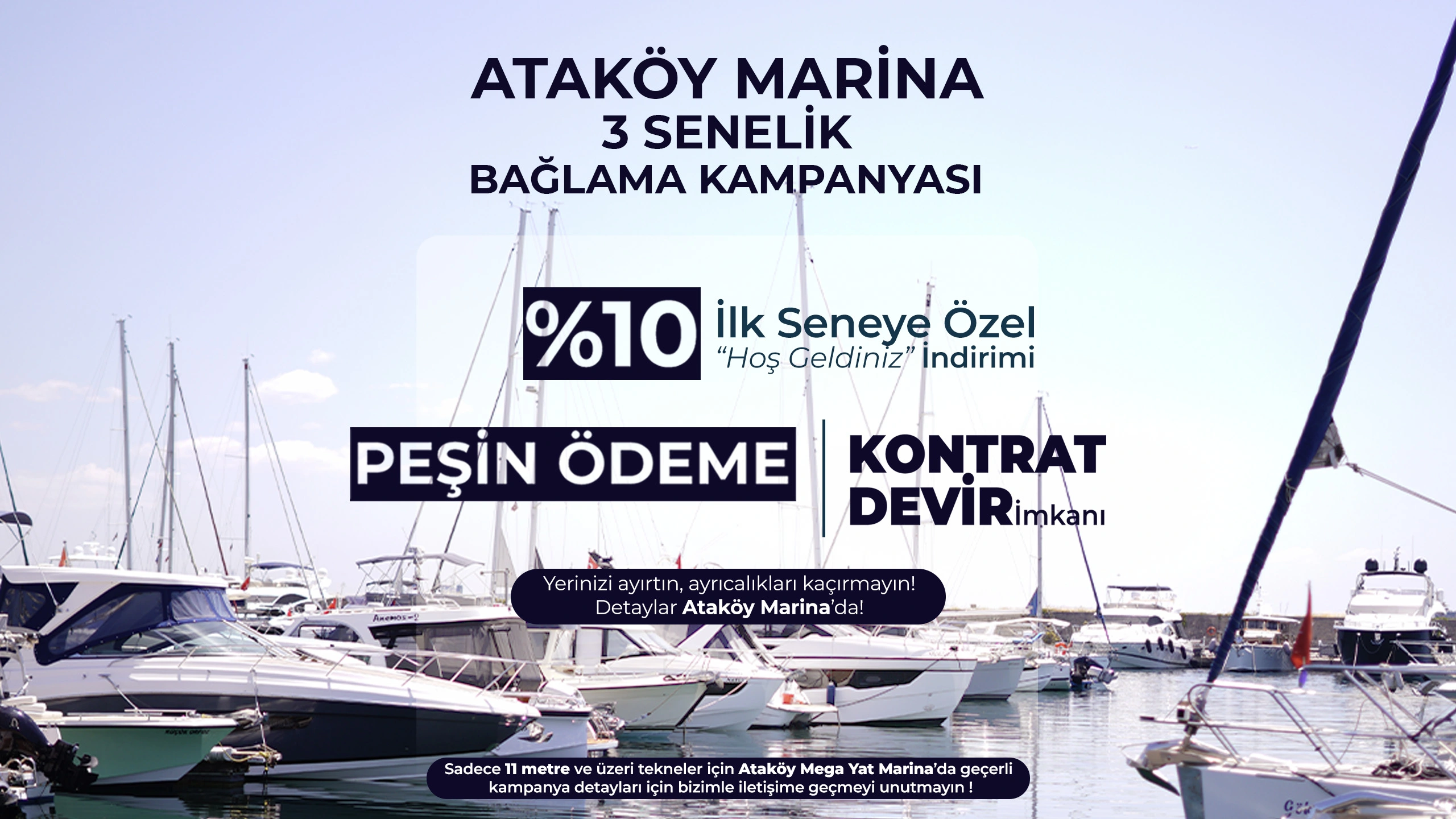 Türkiye'nin en prestijli marinaları arasında yer alan Ataköy Marina; benzersiz konumu, deneyimli kadrosu ve ayrıcalıklı hizmet anlayışı ile uluslararası platformda seçkin bir markadır. Ataköy Marina yeni açılan Mega Yat Limanı ile birlikte tekne boylarına bağlı olarak toplam 1000 tekneye denizde bağlama yeri sağlayabilecek kapasiteye ulaştı. Marina, müşterilerine tam teşekküllü teknik servis, 7/24 güvenlik ve sağlık hizmetlerini sunmaktadır.